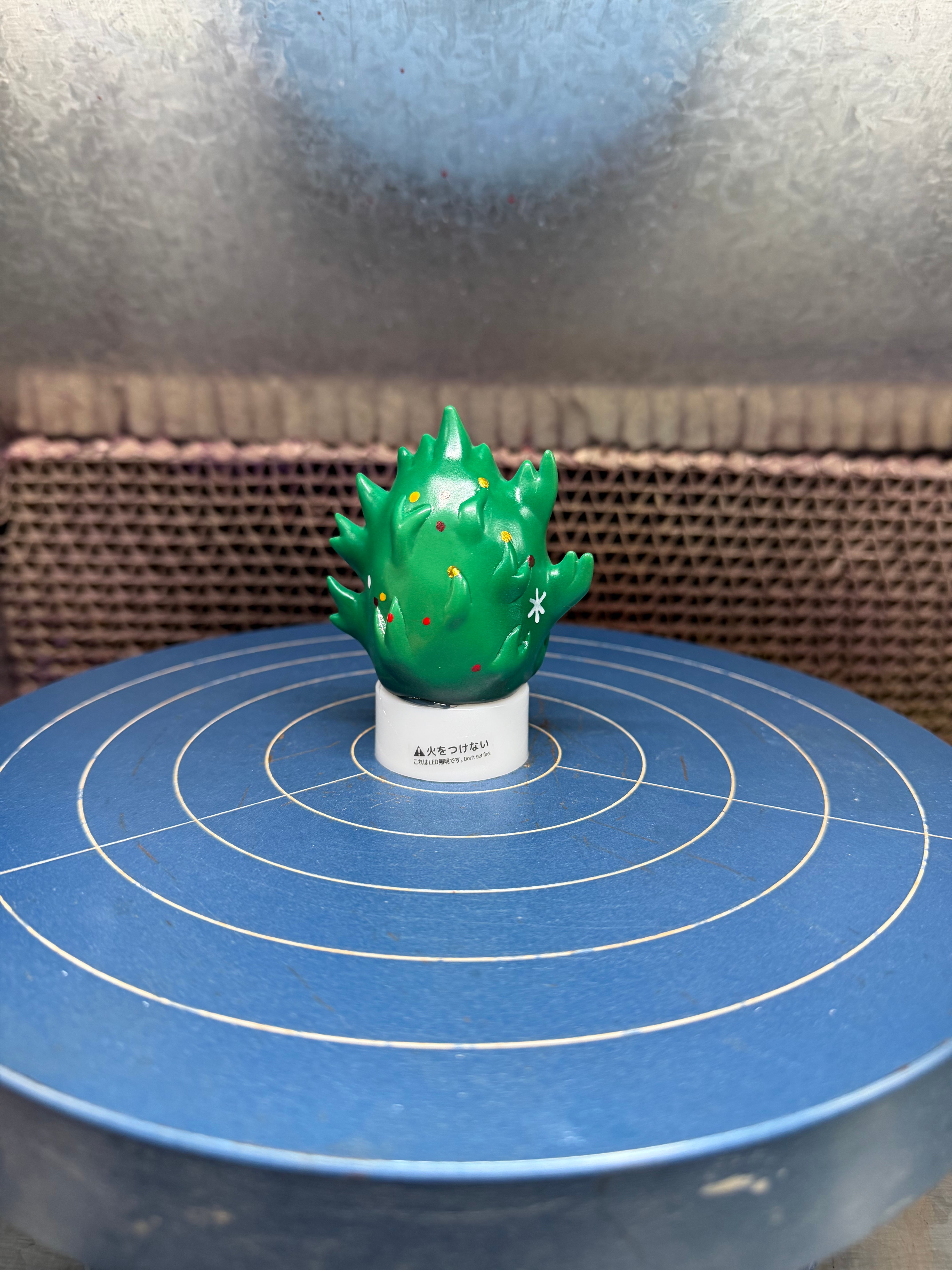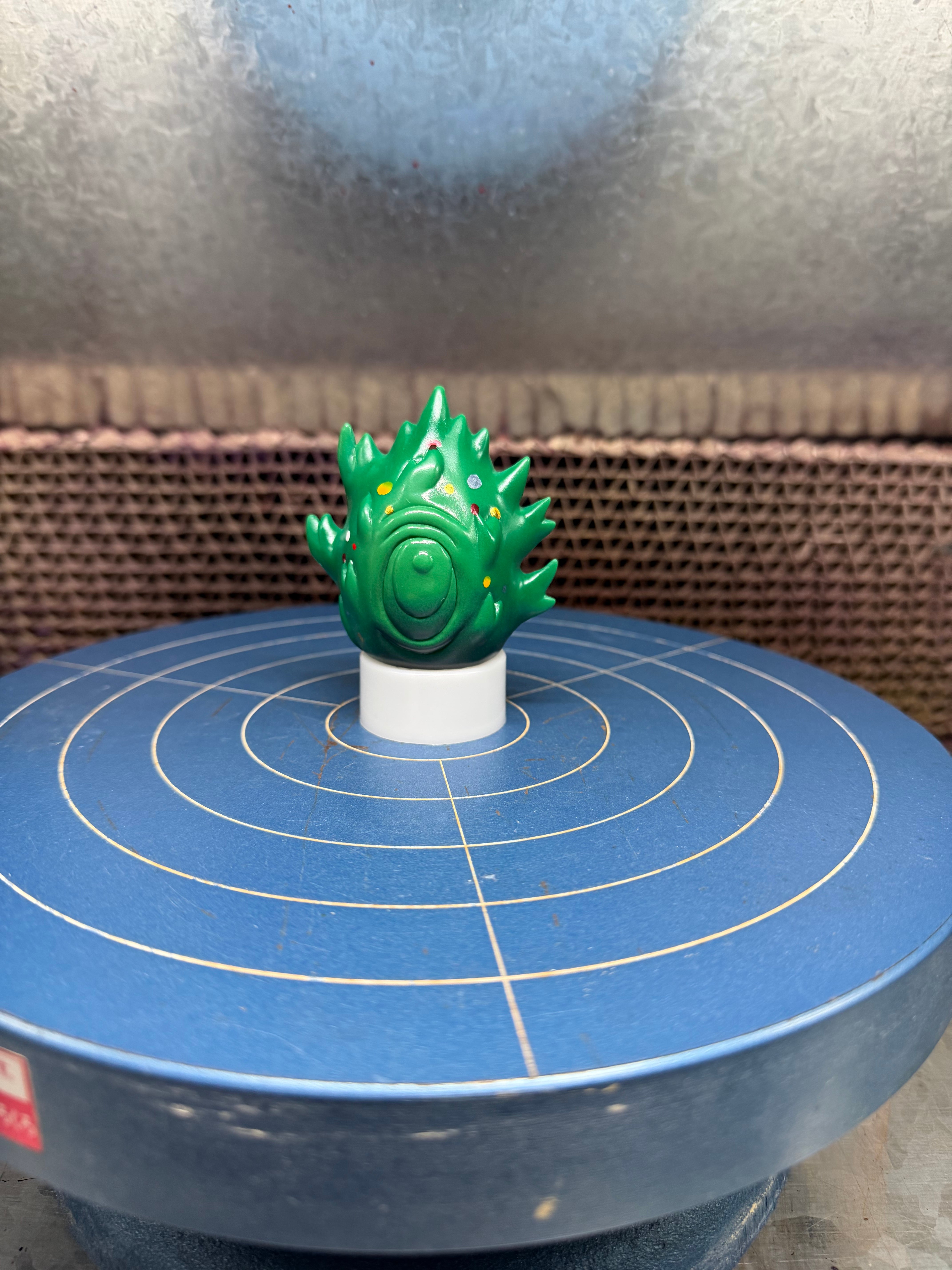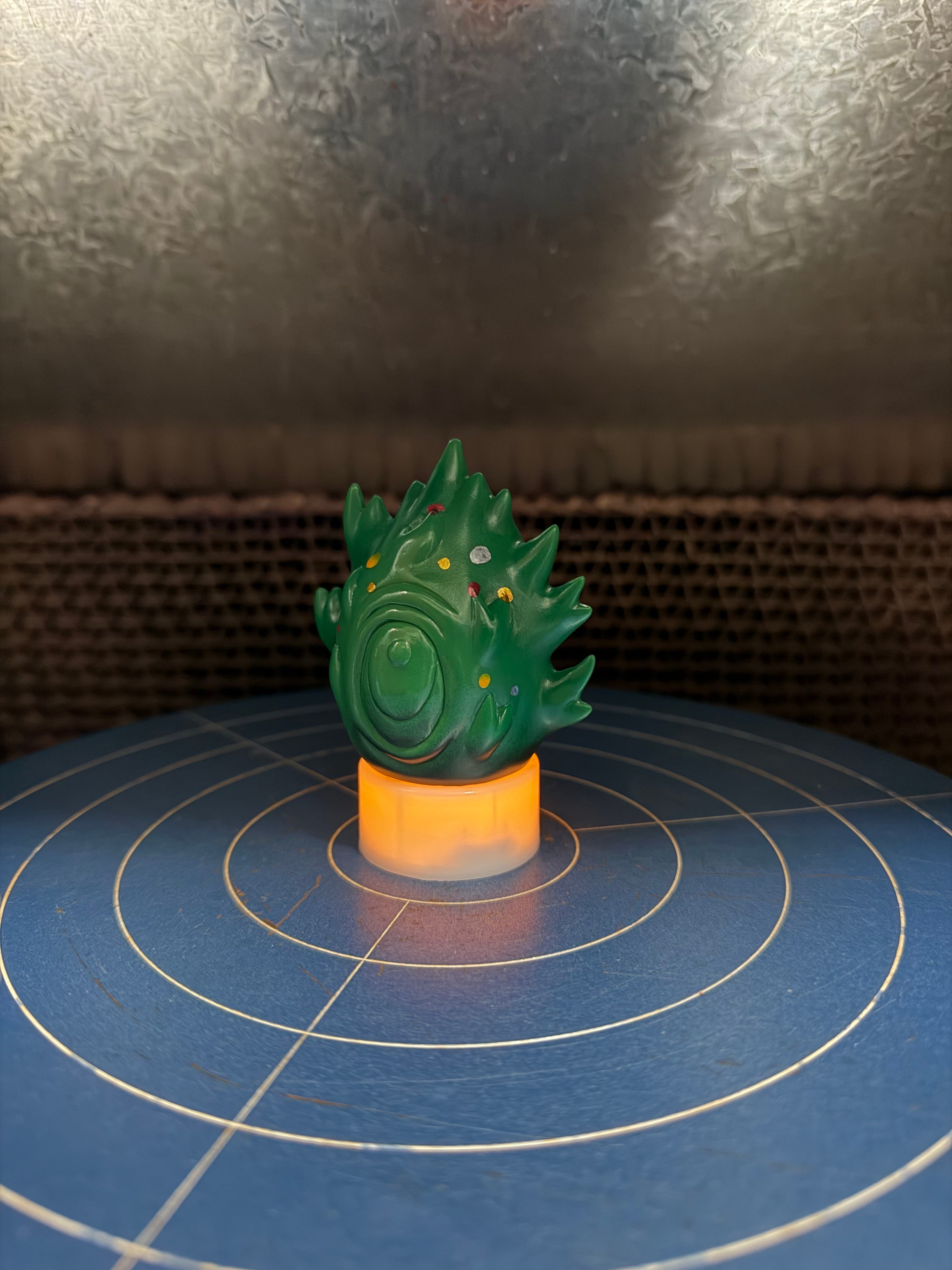 Tenka head in green soft vinyl with purple sprays, and hand-brushed ornaments. Attached to an LED candle giving you some mood lighting for this holiday season.