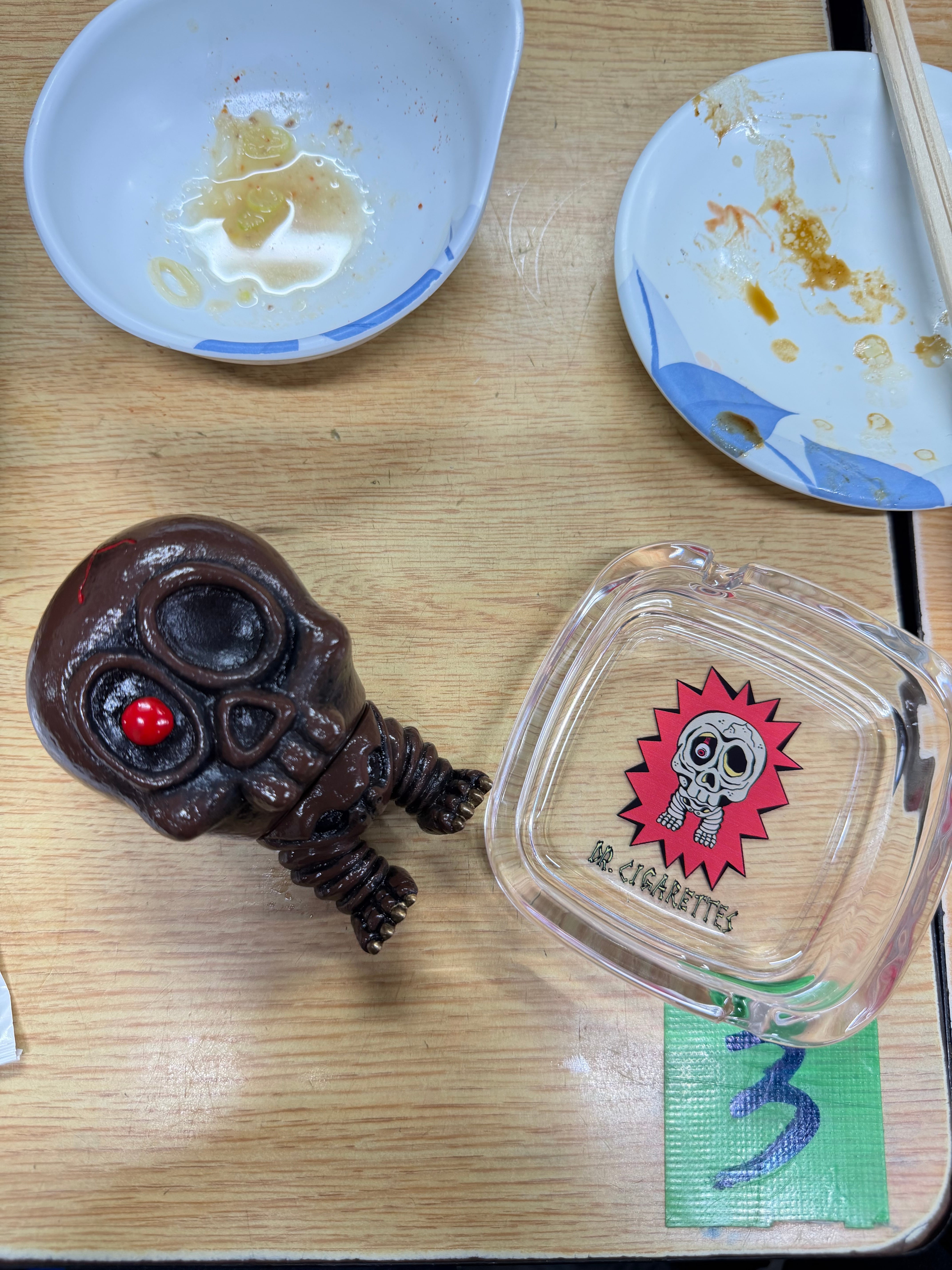 Brown sofubi with black rub, gold and red accents Dr Cigarettes.